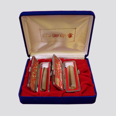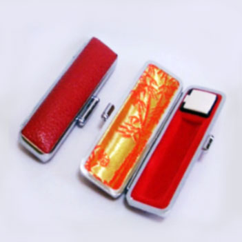 | チタン印鑑には、専用ケースがオススメです。 内側は、黒ベルベットでクールな印象!! ※チタン印鑑専用になります。 その他のハンコは入りません。 ※角印は、入りません。(代表印・銀行印用です) 角印は、レザーケース1本用¥1,700 または 皮袋大 ¥440 をご使用ください。 |